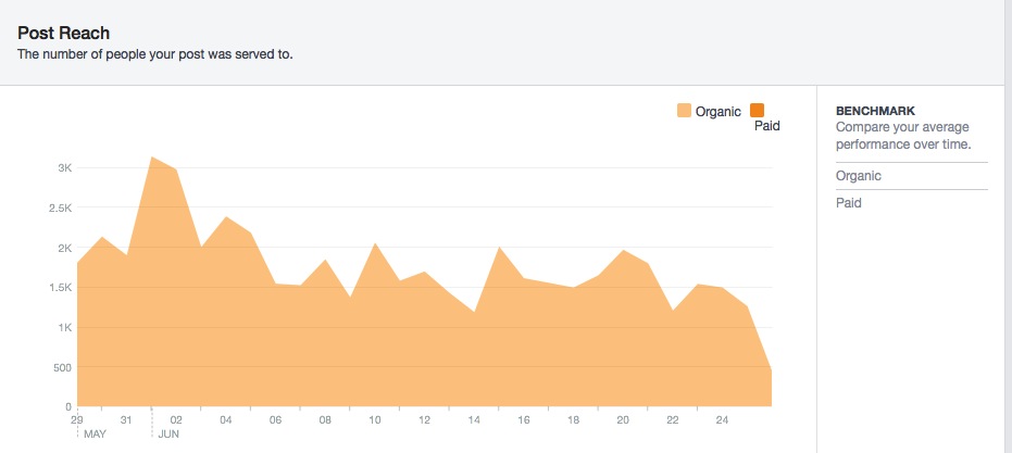 Post reach is the amount of people who have been exposed to your post. It doesn’t mean they actually saw it or interacted with it. It just means it showed up in their news feed and they scrolled across the screen. If you see a spike in this number that means one of your posts were popular among your fans. This could be more people liked, commented or shared the post. It would be wise to look through your posts and see which one spurred the engagement. Once found try to figure out why the post was so successful and see if you can incorporate it into your social strategy.