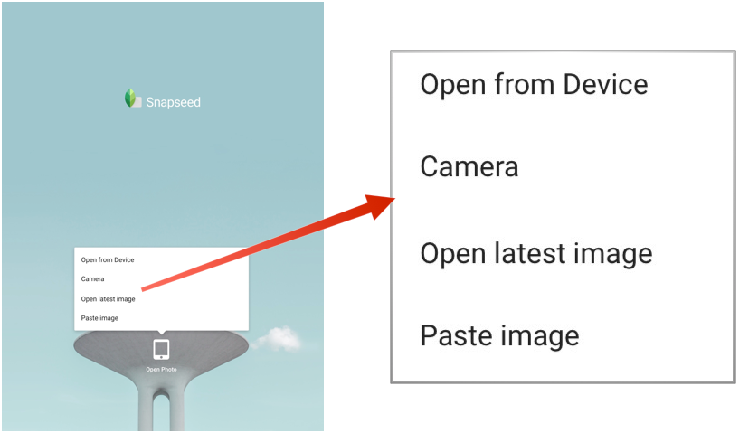 Click the open It gives you four options. Open from Device, Camera and Last Image