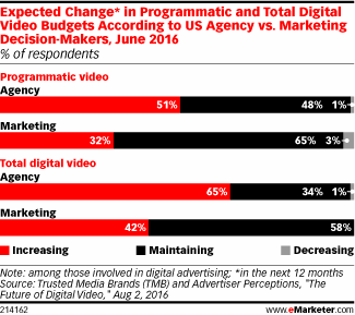 The spending by Agencies and also brand will increase this year. According to the graph reported by eMarketer.com. Agencies are pushing video more than marketers. I think will balance out next year. It will catch up to their agency counterparts.