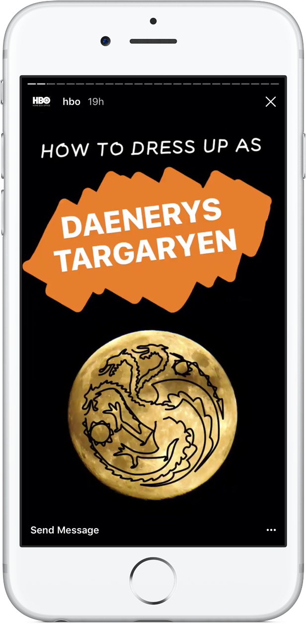 Next Compnay that that used Stories on Instagram is HBO. They used it to tell followers how to create Halloween Costumes of some of their most iconic characters. They included Game of Thrones, Sex in the City, True Blood and more. Here are all the Halloween Costume Suggestions: