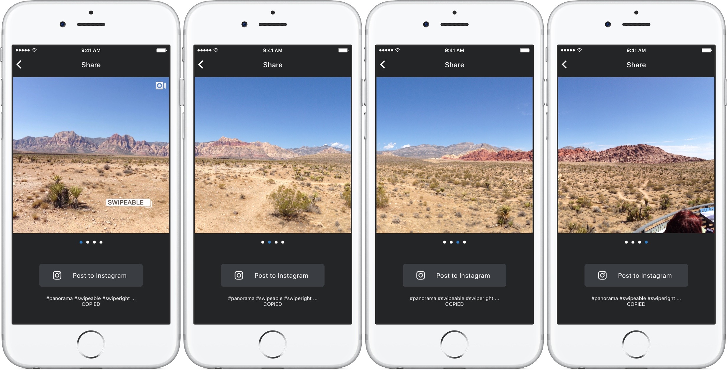 Sharing a panoramic picture would mean putting in Photoshop and making square pictures in a row. This is a lot of work, especially for those who, like me, aren’t the Photoshop masters. In all honesty, it was a lot of more work than it was worth. That is until now. There is an app that can help you take your awesome pics and put them in a swipeable form. The app is called Swipeable Panorama for Instagram.