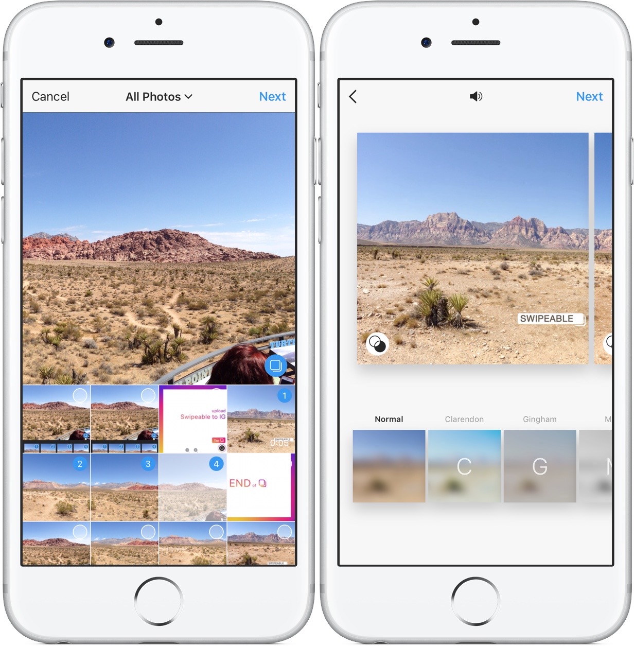 If you notice the picture above the first picture is actually a video. It will say “Swipeable” on the image and wiggle the image to let people know they can swipe for more images. It’s pretty cool, especially for followers who scroll fast through their feed. Or, for people new to Instagram, it will alert them they can seem more.