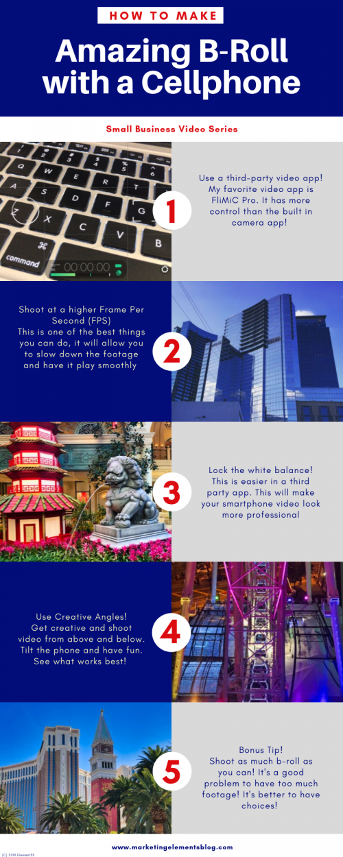 Bonus tip – Shoot a ton of b-roll when you can. I have found that there are times when I shoot what I think is enough video, but when I get to editing, I need about 30 secs to a minute more footage. Shoot everything you see and do it more than one angle. There are times when I thought I got a specific shot but realizing that I only got a part of what I wanted or needed. You can not have too much footage, especially if it’s for your business or a regular client.