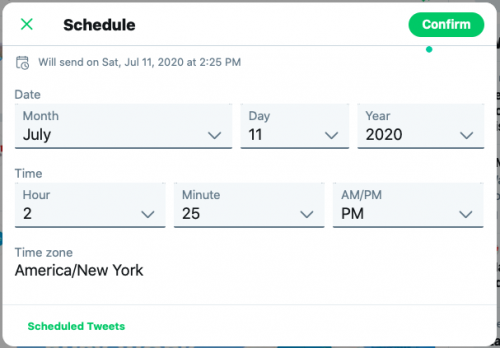 There are two ways to schedule on Twitter. You can use Tweetdeck on the desktop or from the regular Twitter client. I’m suing the web version of Twitter. To schedule, write your post, include any pics, then at the bottom of the compose window the icon on the right next to the emoji icon, is the schedule. Click it and the schedule window pops up. Fill out when you wanted it posts and confirm.
