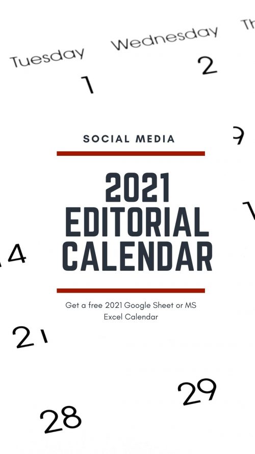 2021 is here! If you need a social media calendar, I have one for you! This is an updated version of last year’s calendar. The calendar is in Google Sheets, but you can download and use in MS Excel or Numbers.